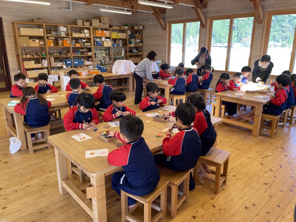今回は、カスタネット作りを楽しみました。やすりを使って木の角をまるく削った後は、自由にお絵描きを楽しみました。