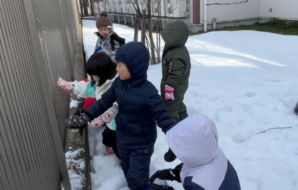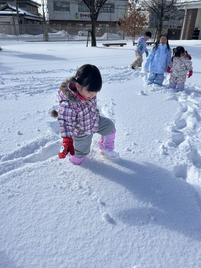 雪が降る短い期間しか楽しむことのできない雪遊び。冬ならではの遊びを気候や気温など配慮しながら行い、子ども達も存分に楽しみました。