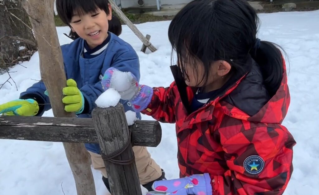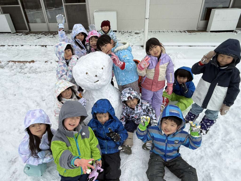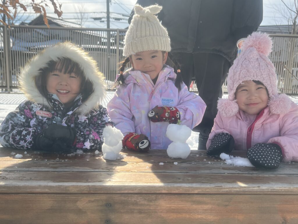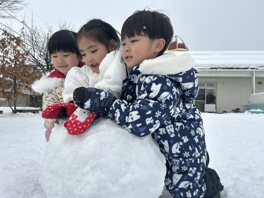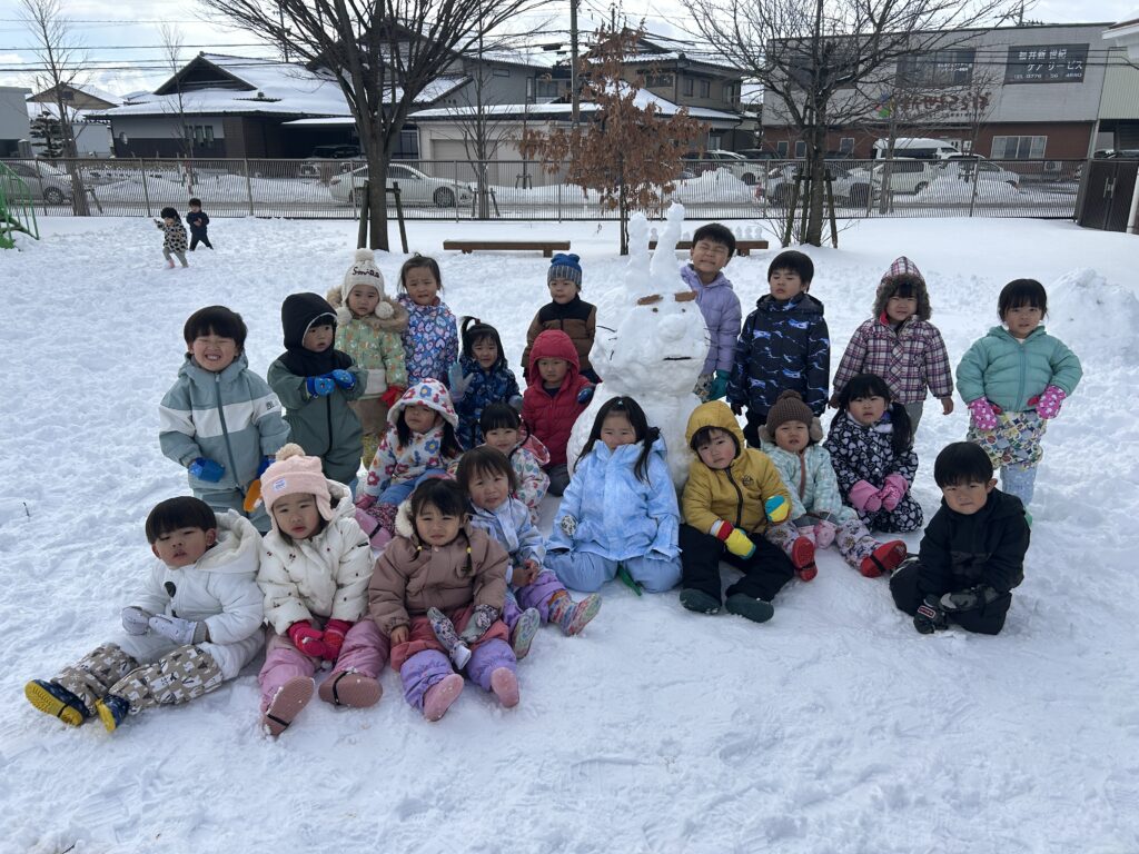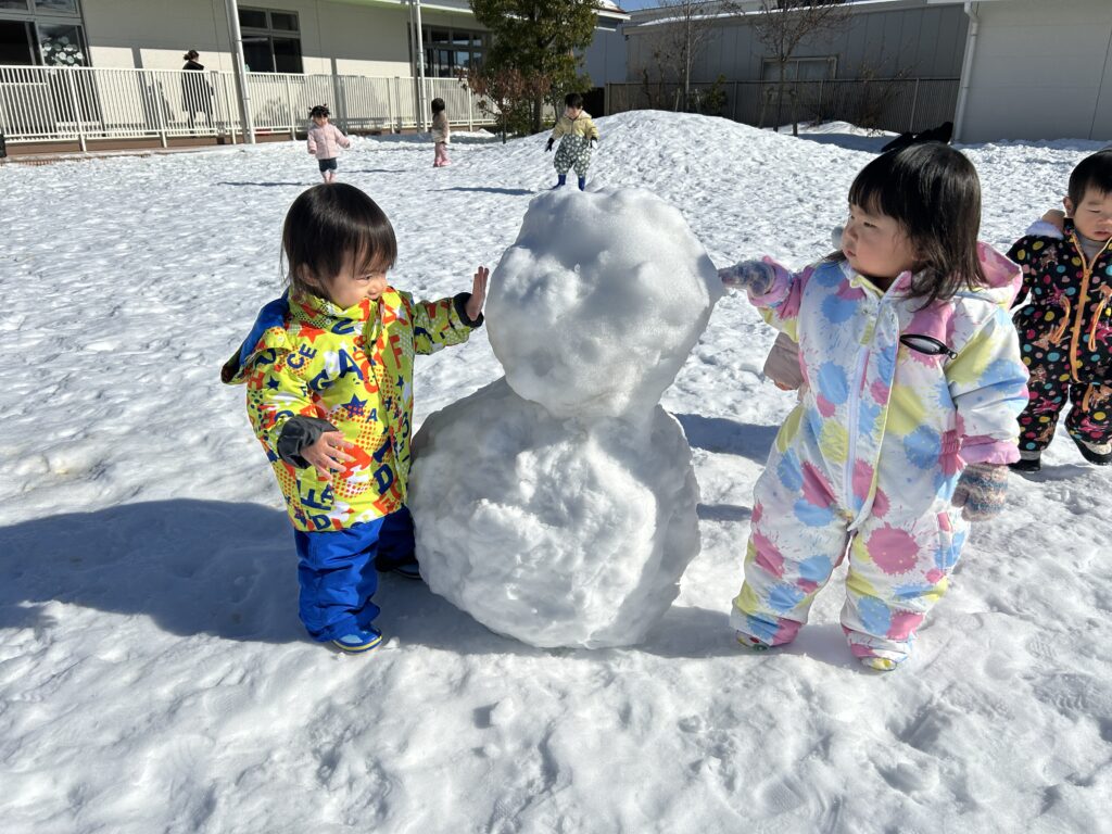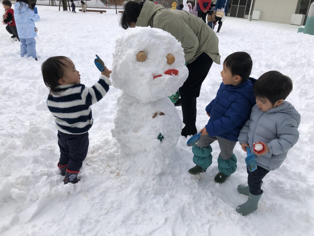 雪だるまを作ったり保育者も一緒になって雪合戦をして暑くなるほど盛り上がりました。