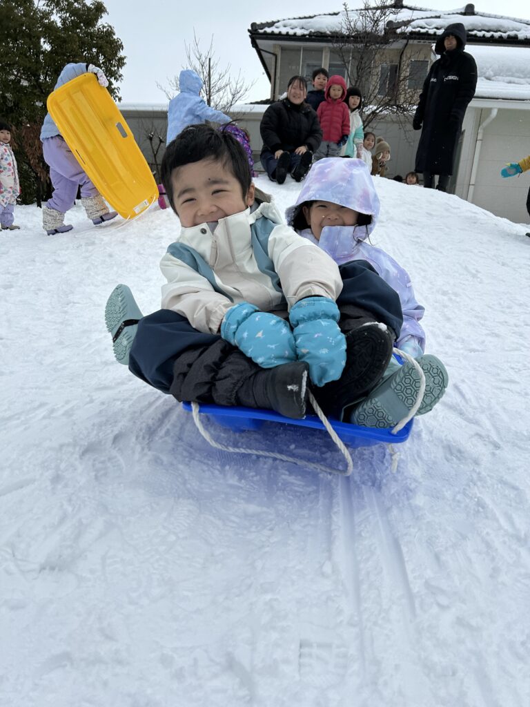 雪山からそりをしたりお友達が乗るのを引っ張ったり好きな遊びを繰り返し楽しむ姿が見られました。