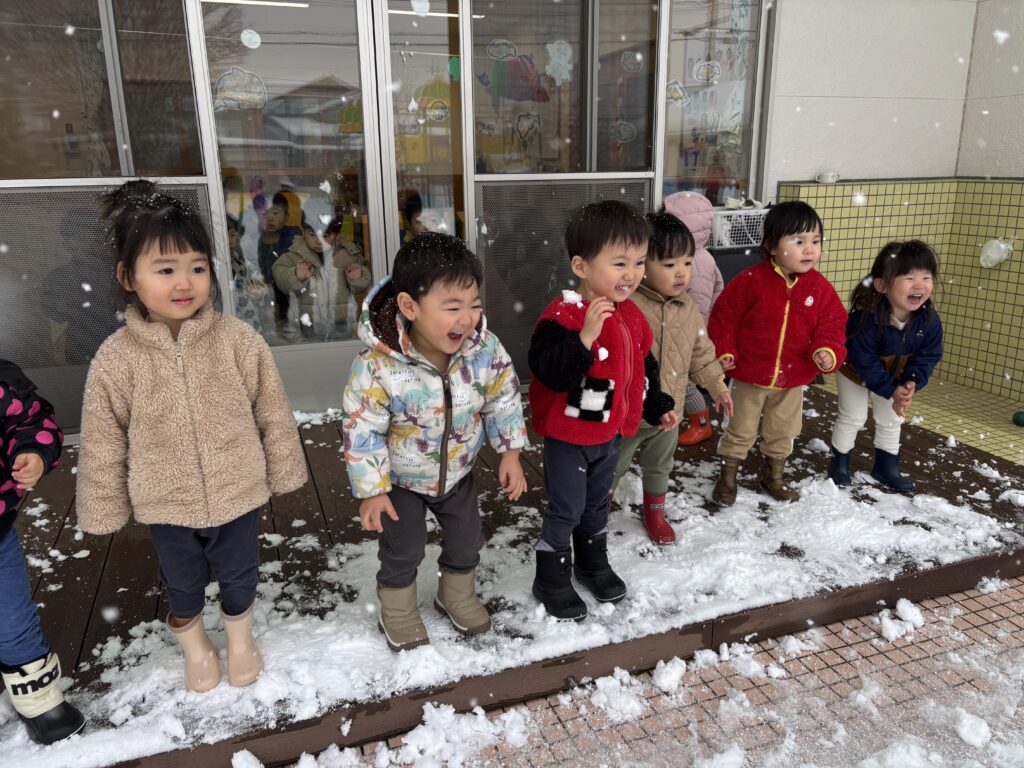 雪がたくさん降って、子ども達は雪遊びをするのをワクワクしながら待っていました。